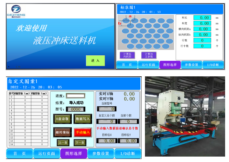 此平板送料系统,可满足0到120次/分的冲床。系统集成多种标准图形可满足绝大数客户需求,同时具有自定义CAD图形导入功能。X,Y轴伺服送料,定位精度高,加减速平稳。